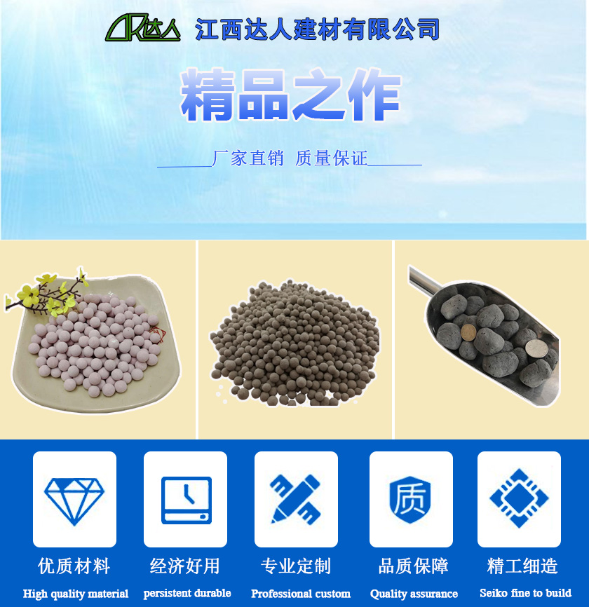 江西達人建材有限公司所生產的陶粒,按照其用途可以稱為水處理陶粒(陶粒濾料、污水處理廠專用陶粒)是一種新型的生物膜載體濾料,具有質輕、比表面積大、吸附能力強等優勢,廣泛用于各種形式的濾池濾罐。